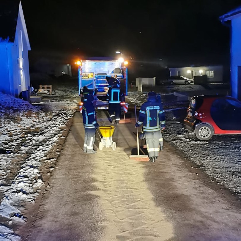 Die Kleineinsatzgruppe Nacht wurde am Abend zu einer Ölspur alarmiert. Vor Ort wurde diese mit Bindemittel abgestreut.